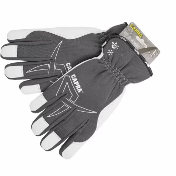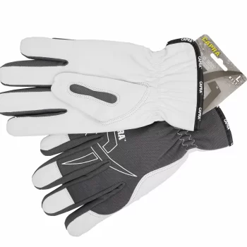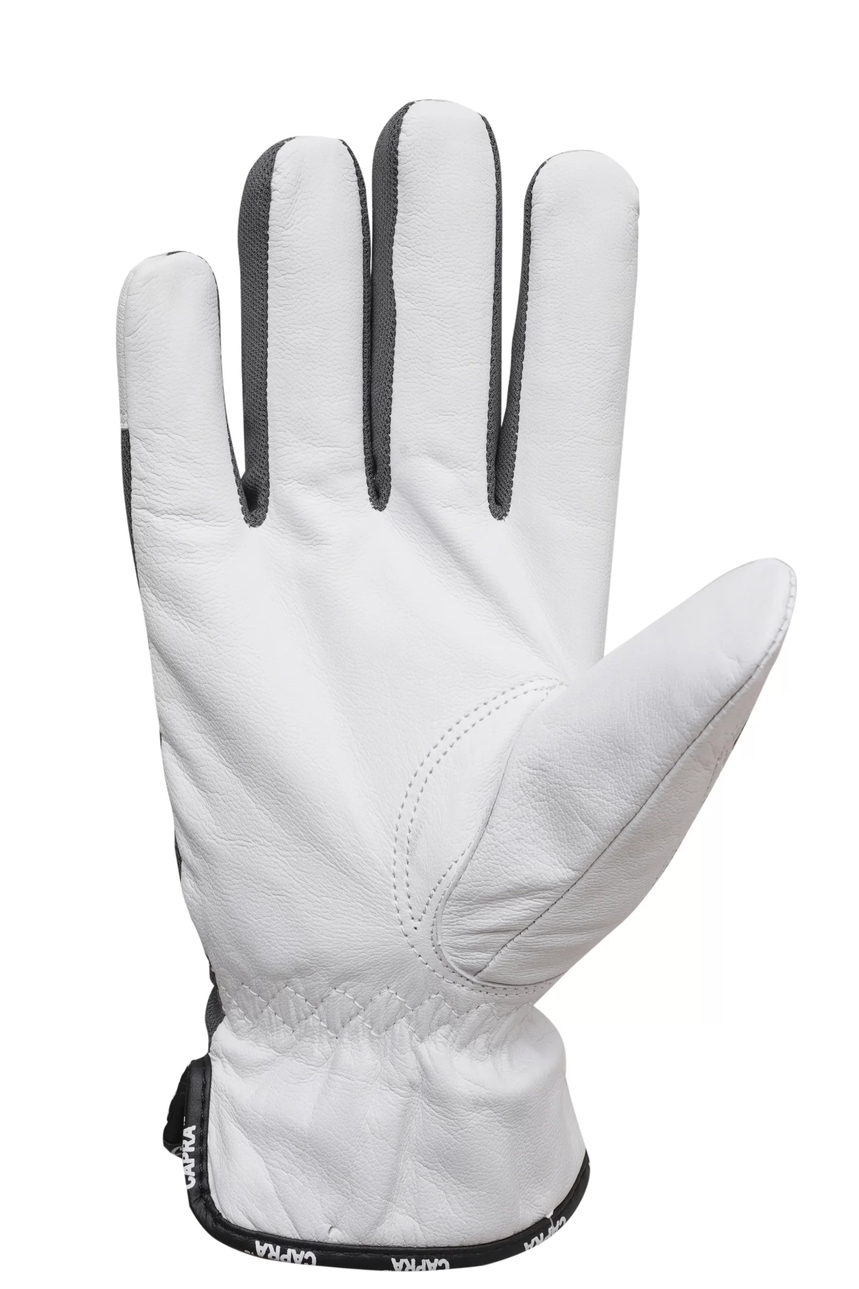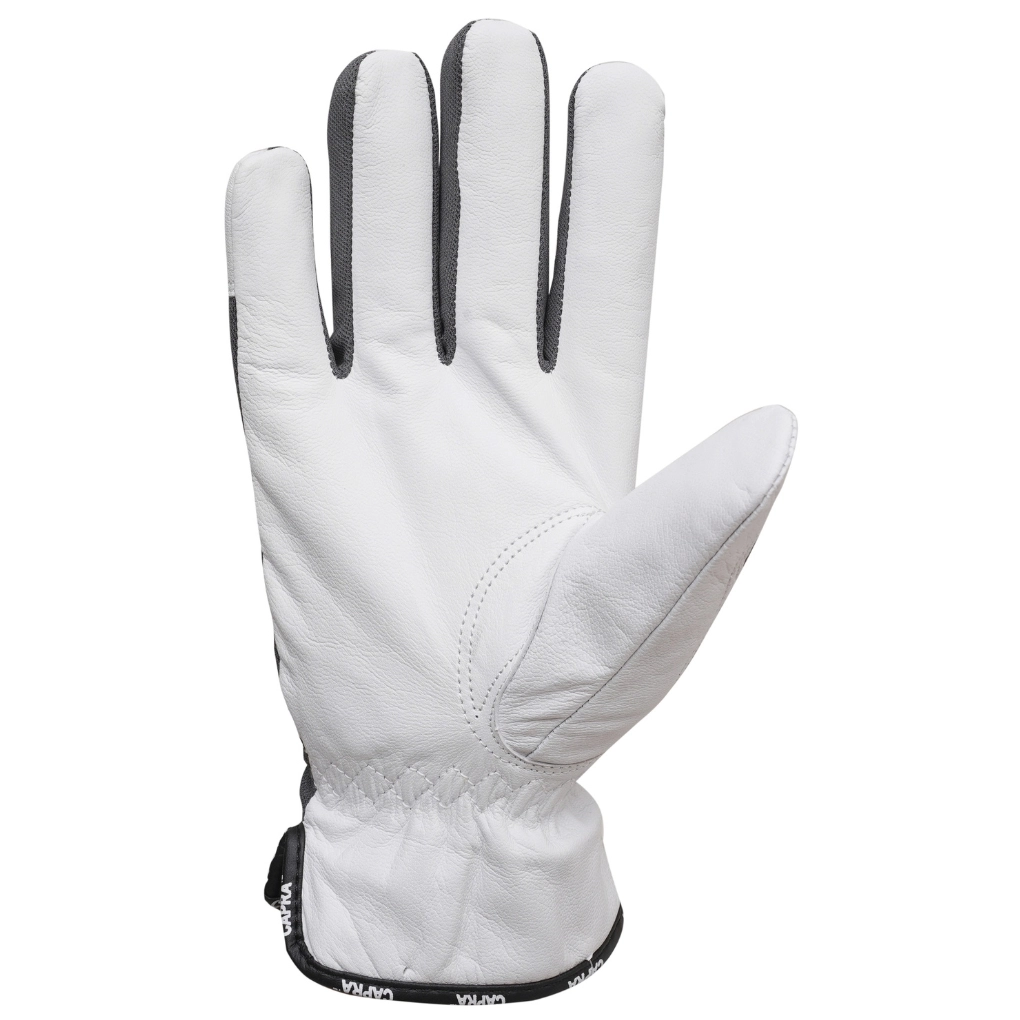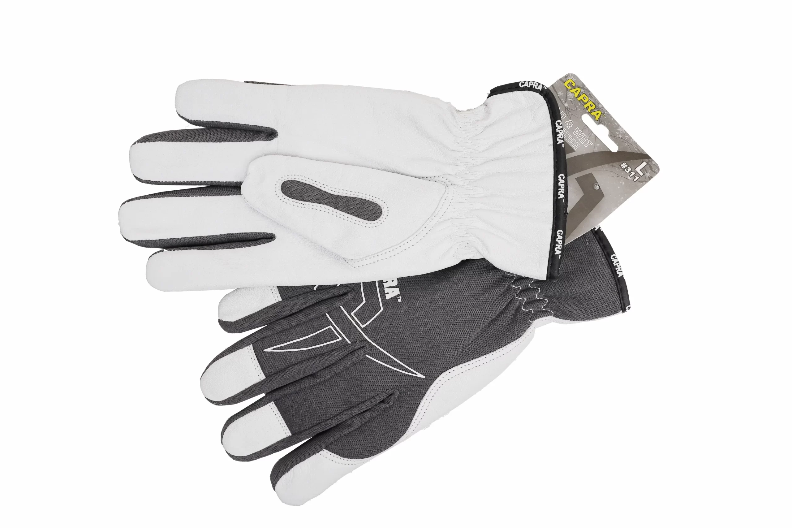 Waterproof, comfortable gloves with goat leather. The inside 40gm Thinsulate aid in retaining body heat & Bird Eye Polyester on back.