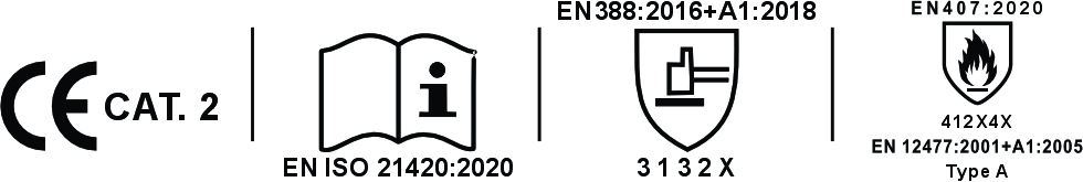 Withstands contact heat up to 100°C, Reinforced seams, Withstands welding sparks and grinding splash.
