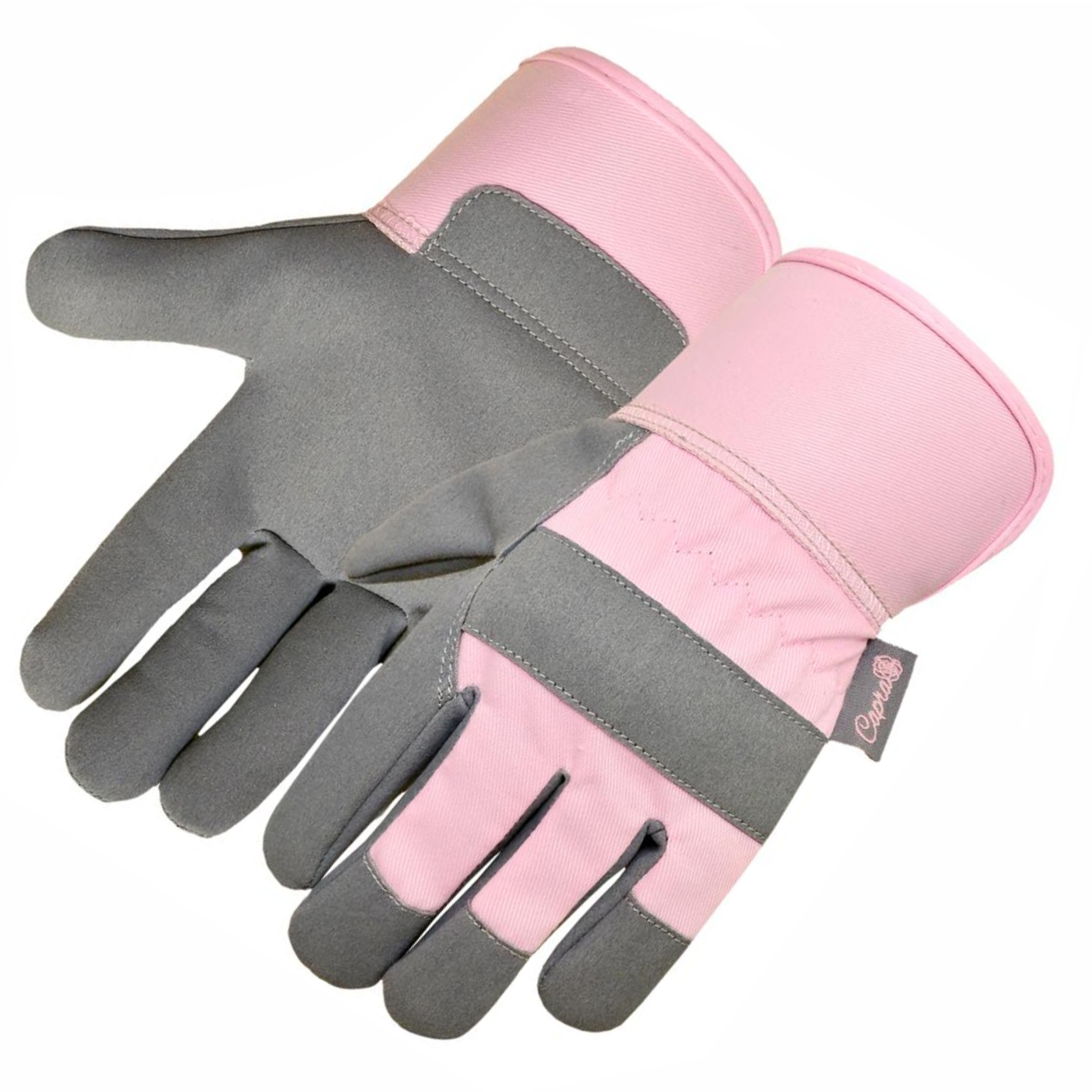 A garden glove made with chrome free synthetic leather palm,cotton back and rubberized cuff for thorn and dirt protection.